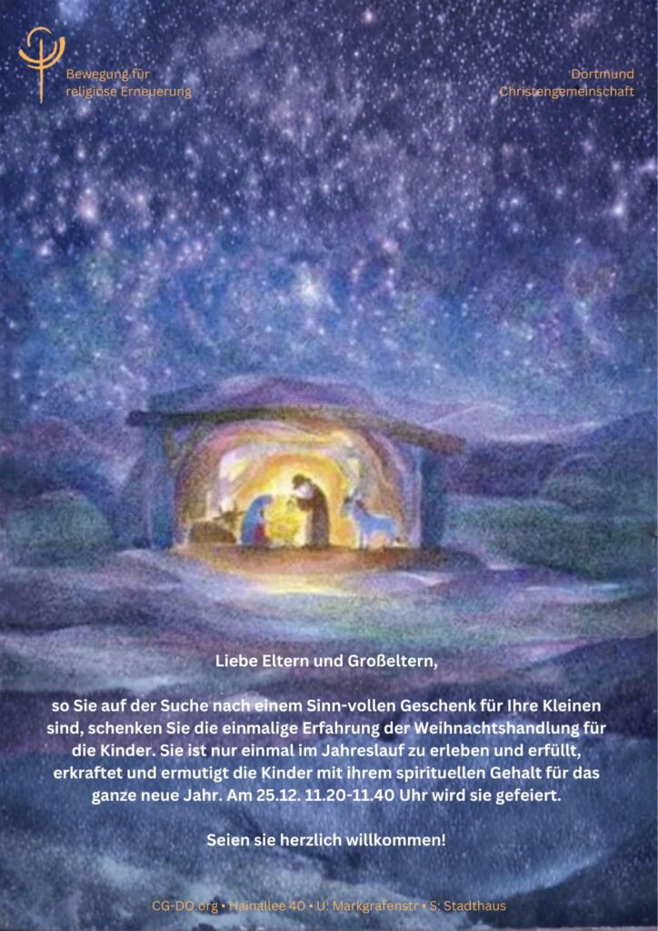 Hainallee 40, 44139 Dortmund, DeutschlandDie Sonntagshandlung für die Kinder im Schulalter bis 14 Jahre. Beginn nach kurzer Einstimmung: 11.20 Uhr. Die Sonntagshandlung für die Kinder